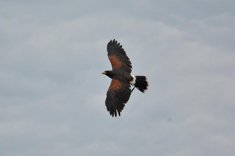 Ist mit seinen 700 g und 1 m Flügelspannweite ein kleiner aber wendiger Flieger, der seine Beute nicht nur am Boden, sondern auch in der Luft fangen kann. Wuestenbussarde leben in Mittel- und Südamerika und jagen als Gruppe von bis zu 6 Vögeln verschiedene kleine Nagetiere.